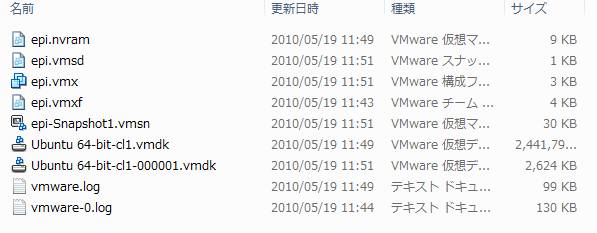 次にepi20100519.zipをハードディスクに展開してください.D:ドライブかC:ドライブのルートにvmwareというフォルダをつくり,その中におくのが良いと思います.つまりD:\vmware\epi20100519というフォルダになります.展開したepi20100519のなかをみると,
