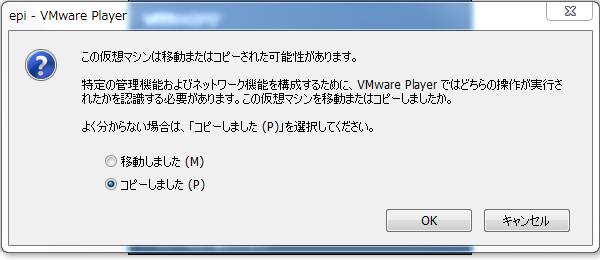#コメント: なおメモ帳でepi.vmxを開くと分かりますが,修正点は tools.syncTime = "FALSE" という行を tools.syncTime = "TRUE"に直したところだけです.これがないと,仮想マシンの時計が少しずつ遅れてしまいます.