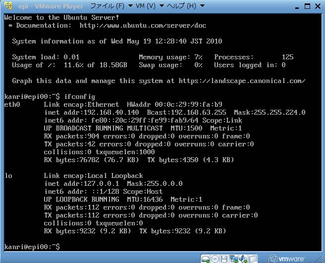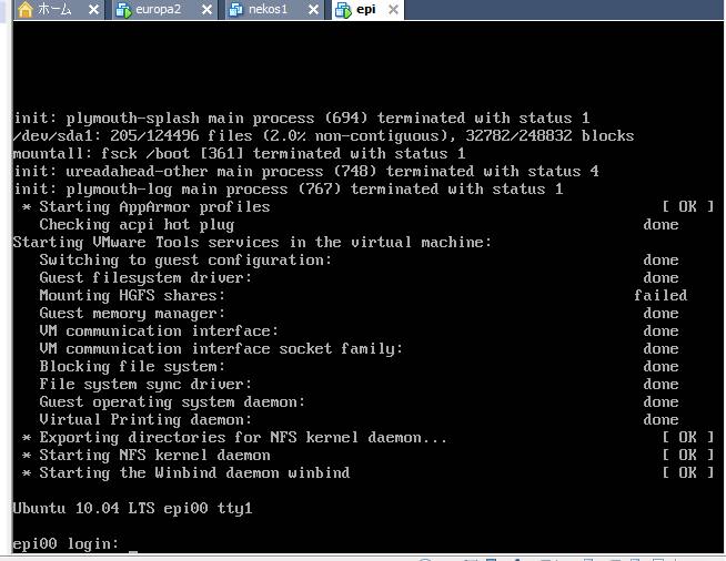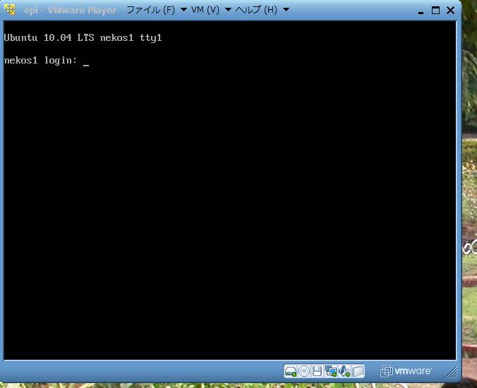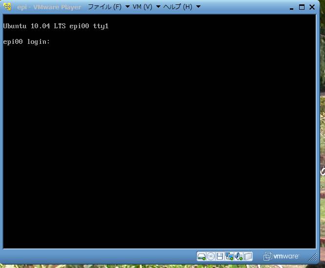 vmware(またはvmplayer)のコンソールを見るとepi00になってるのがわかる.