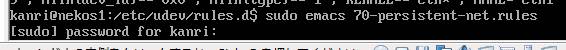 sudo emacs 70-persistent-net.rulesとする.パスワードをうつ.