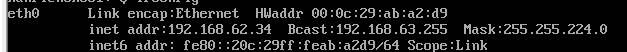 addr: 192.168.62.34 となっているところの数字が,DHCPで取得したIPアドレス.数字はこれとは異なるはずです.この数字(今の例なら192.168.62.34のこと)を記録する.