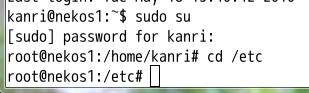 sudo面倒なので,sudo suでrootになる.cd /etcする.