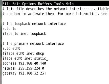 /etc/network/interfaces-epiを/etc/network/interfacesにコピーしてから,emacsで/etc/network/interfacesをひらく.