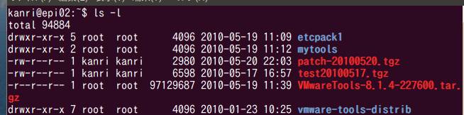 ここにドラッグしてpatch-20100520.tgzをおきます.そのあとepi02にログインしてlsします.