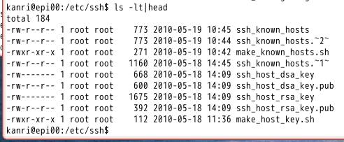 パワーオンしてないマシンがある場合など,必要に応じてバックアップファイルから手で編集して,epi00には完全版のssh_known_hostsファイルをおくようにしておく.方法1の場合だと,このような臨機応変な対応が面倒ん.