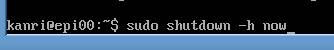 しばらくまつとパワーオフされます。どのユーザーでshutdownを実行してもパスワードが要求されないように設定してあります.
